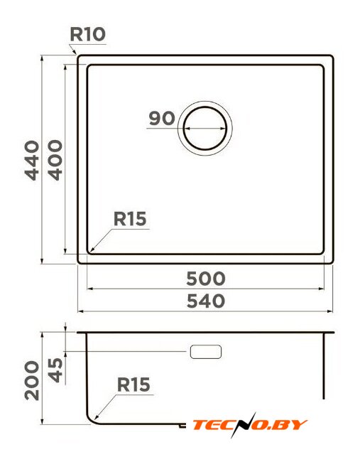 врезная на столешницу/врезная под столешницу, нержавеющая сталь, размеры: 54x44 см, глубина чаши: 20 см, в шкаф шириной от 60 см