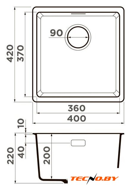 врезная под столешницу, искусственный камень, размеры: 40x42 см, в шкаф 45 см