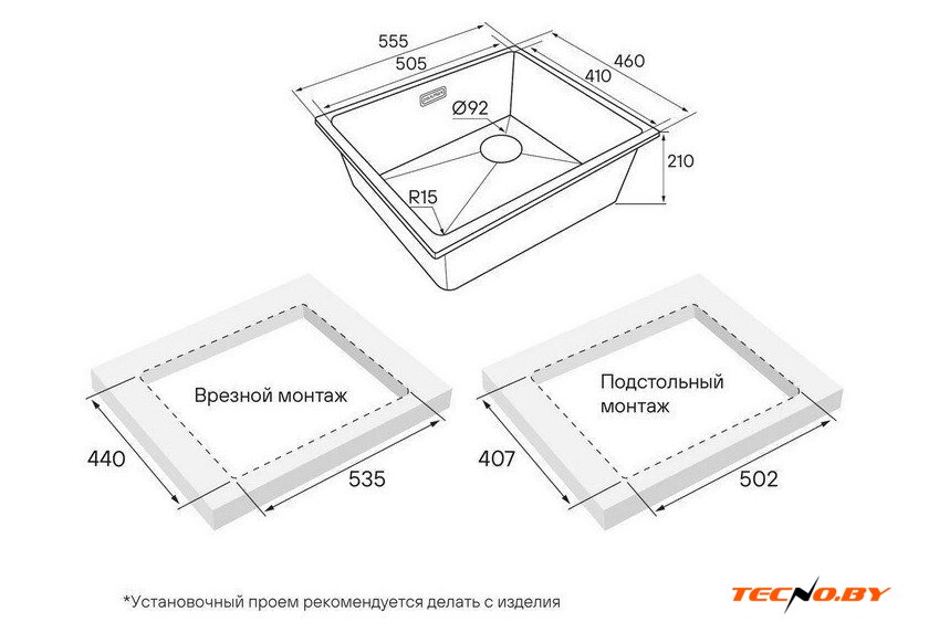 врезная на столешницу/врезная под столешницу/врезная вровень со столешницей, искусственный камень, размеры: 74x46 см, глубина чаши: 21 см, в шкаф шириной от 80 см