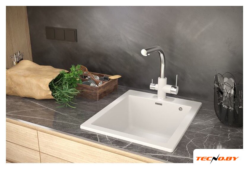 врезная под столешницу, кварц, фактура: матовая, размеры: 48.5x60.5 см, глубина чаши: 18 см, в шкаф шириной от 60 см