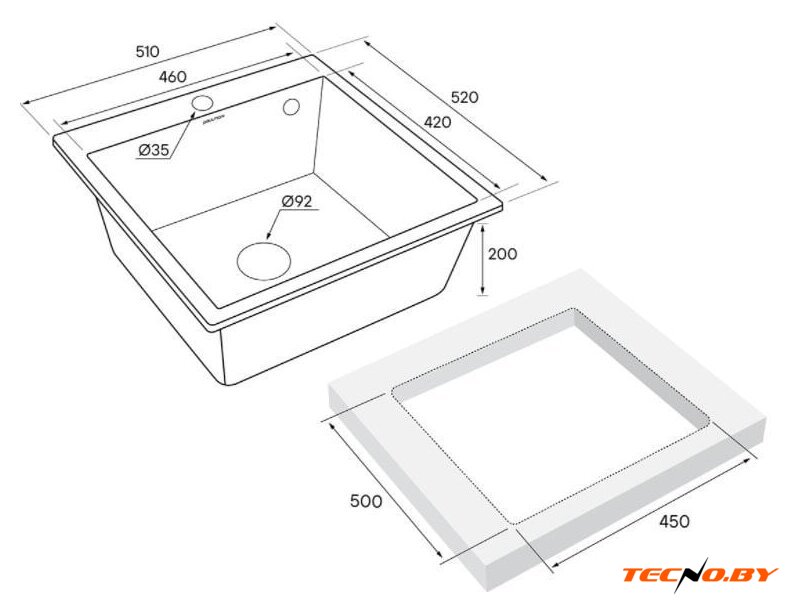 врезная на столешницу, гранит, размеры: 50x50 см, глубина чаши: 18 см