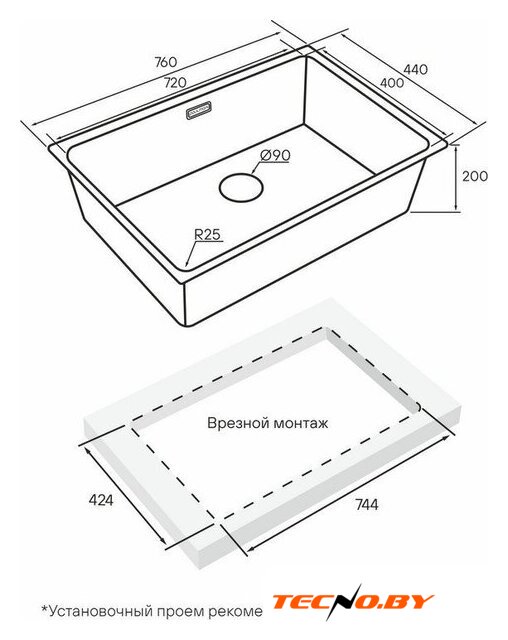 Способ установки | врезная на столешницу, врезная под столешницу |