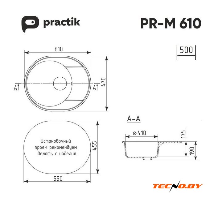 врезная на столешницу, искусственный камень, размеры: 47x61 см, в шкаф 50 см