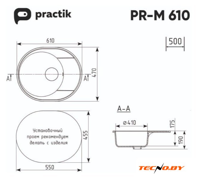 врезная на столешницу, искусственный камень, размеры: 61x47 см, в шкаф 50 см