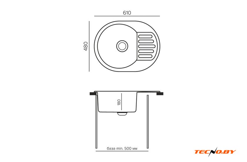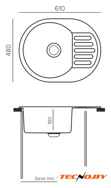 врезная на столешницу, искусственный камень, размеры: 61.5x50 см, глубина чаши: 20.9 см, в шкаф шириной от 50 см