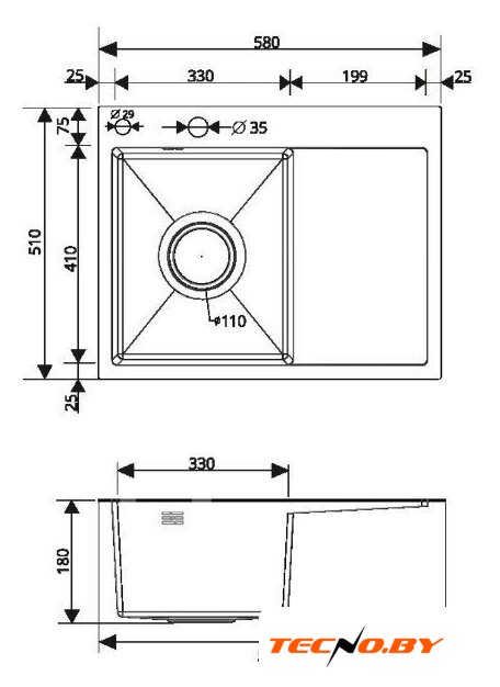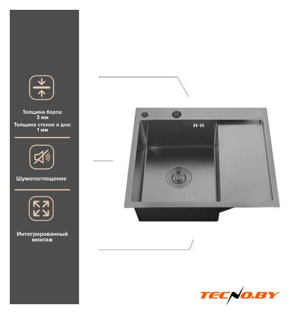 врезная на столешницу, нержавеющая сталь, фактура: с текстурой, размеры: 50x70 см, глубина чаши: 22 см, в шкаф шириной от 70 см
