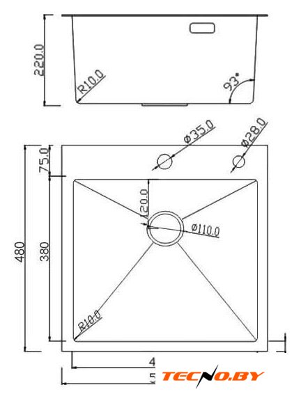 врезная на столешницу, нержавеющая сталь, фактура: матовая, размеры: 50x50 см, глубина чаши: 20 см, в шкаф шириной от 50 см