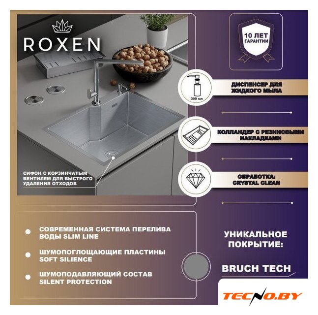 Комплектация | сифон с гофрой, коландер из нержавеющей стали, дозатор для моющих средств, корзинчатый вентиль, декоративная накладка, 2 заглушки на отверстия, комплект креплений к столешнице |