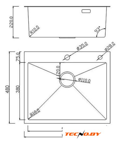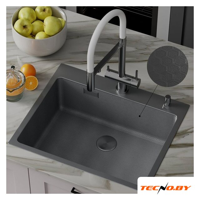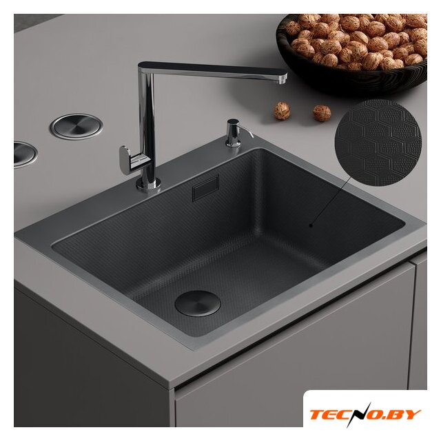 врезная под столешницу, искусственный камень, размеры: 54x44 см, глубина чаши: 22 см, в шкаф шириной от 60 см