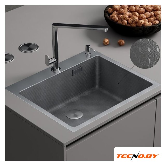 врезная на столешницу, нержавеющая сталь, фактура: с текстурой, размеры: 50x48 см, глубина чаши: 22 см