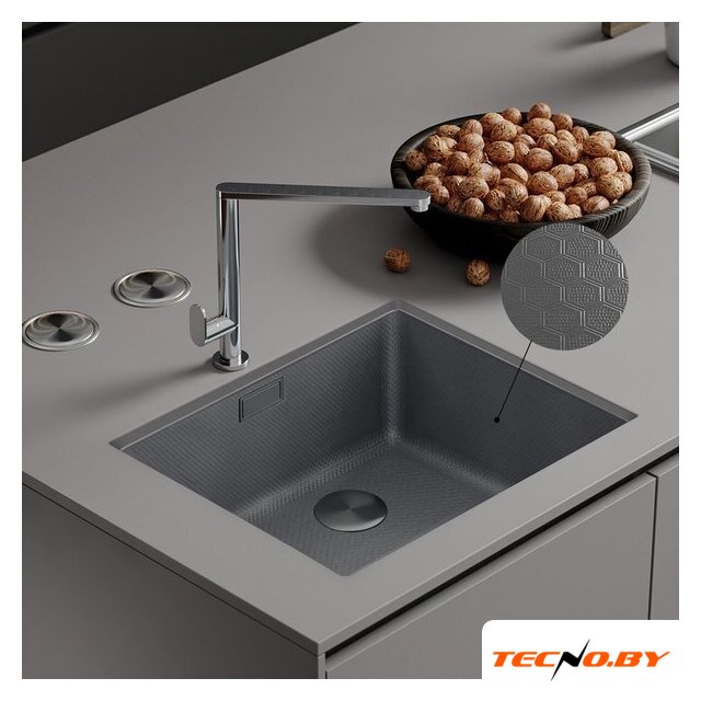 врезная на столешницу, нержавеющая сталь, фактура: с текстурой, размеры: 50x48 см, глубина чаши: 22 см