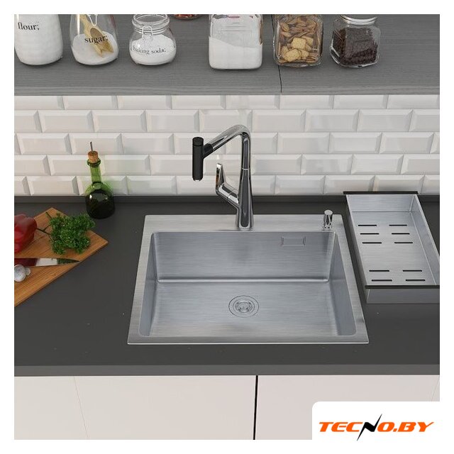 Комплектация | сифон с гофрой, коландер из нержавеющей стали, дозатор для моющих средств, корзинчатый вентиль, 2 заглушки на отверстия, комплект креплений к столешнице |