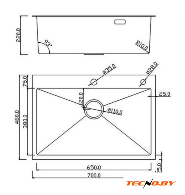 врезная под столешницу, нержавеющая сталь, фактура: матовая, размеры: 55x45 см, глубина чаши: 20 см