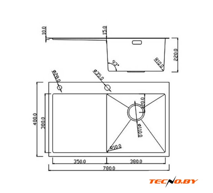 врезная на столешницу, нержавеющая сталь, фактура: сатин, размеры: 78x48 см, глубина чаши: 22 см