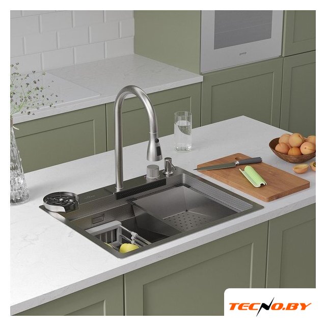 Комплектация | ✅Смеситель✅Ринзер (омыватель стаканов)✅Доска разделочня✅Сифон✅Дозатор для моющих средств✅Коландер телескопический✅Коландер ✅Корзинчатый вентиль с декоративной накладкой✅Комплект креплений к столешнице |