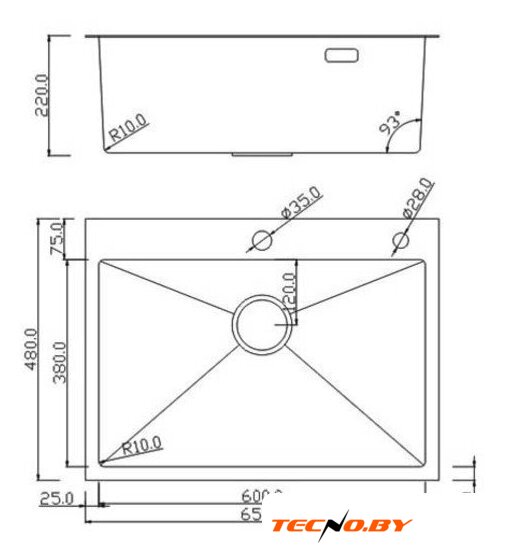 врезная на столешницу, нержавеющая сталь, фактура: сатин, размеры: 70x48 см, глубина чаши: 22 см