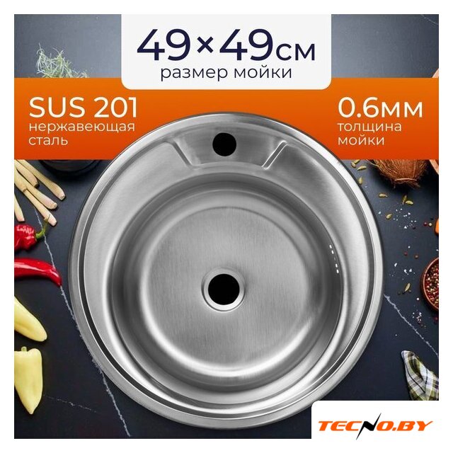 врезная на столешницу, нержавеющая сталь, фактура: матовая, размеры: 48x48 см, глубина чаши: 15.5 см, в шкаф шириной от 45 см