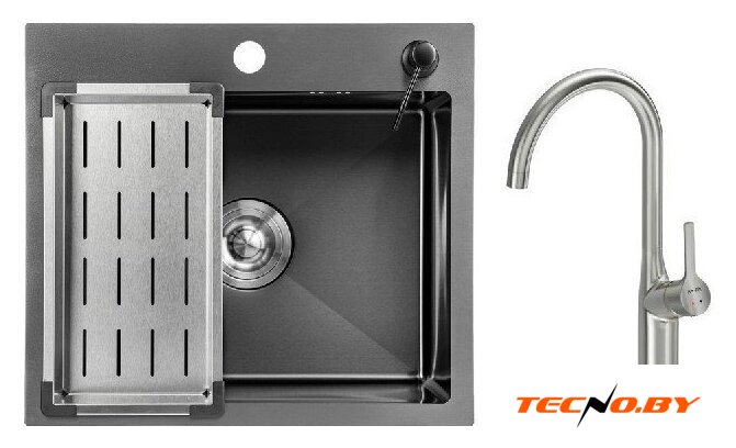 | Комплектация | Мойка кухонная Saniteco 5045 Nano (с сифоном, дозатором и коландером); Смеситель AM.PM Spike F9S07011 (сатин) |
