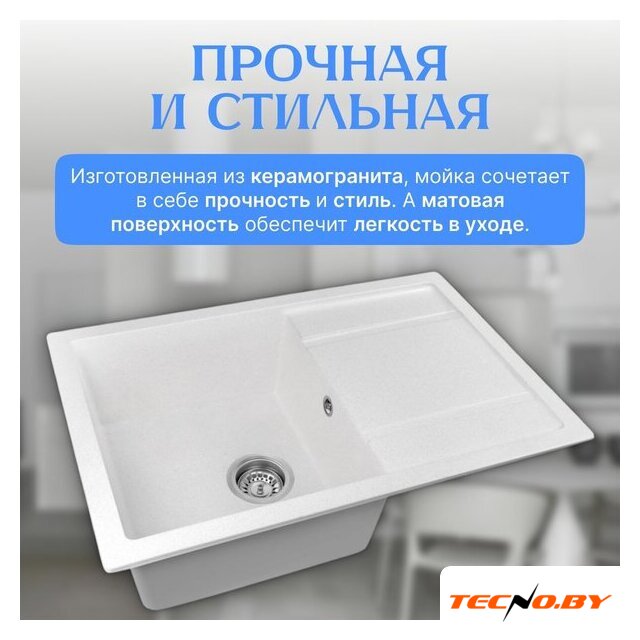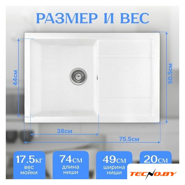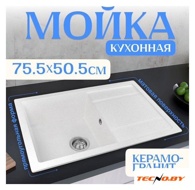 врезная на столешницу, кварц, размеры: 76x50 см, глубина чаши: 20 см, в шкаф шириной от 45 см