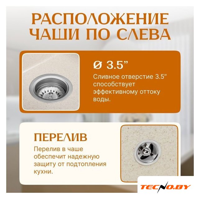 врезная на столешницу, искусственный камень, размеры: 42.5x50 см, глубина чаши: 19.5 см, в шкаф шириной от 45 см