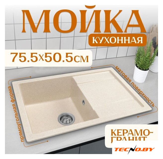 врезная на столешницу, искусственный камень, размеры: 50.5x75.5 см