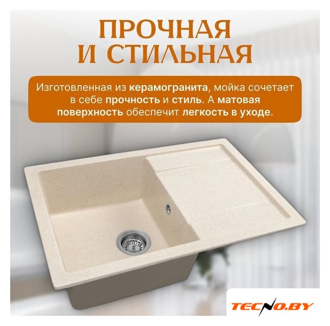врезная на столешницу, искусственный камень, размеры: 76x50 см, глубина чаши: 21 см