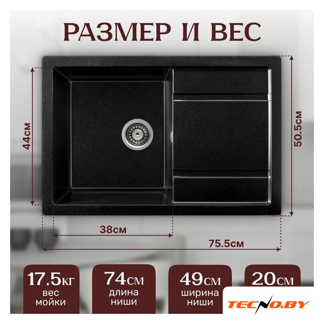 | Длина мойки | 75.5 см |