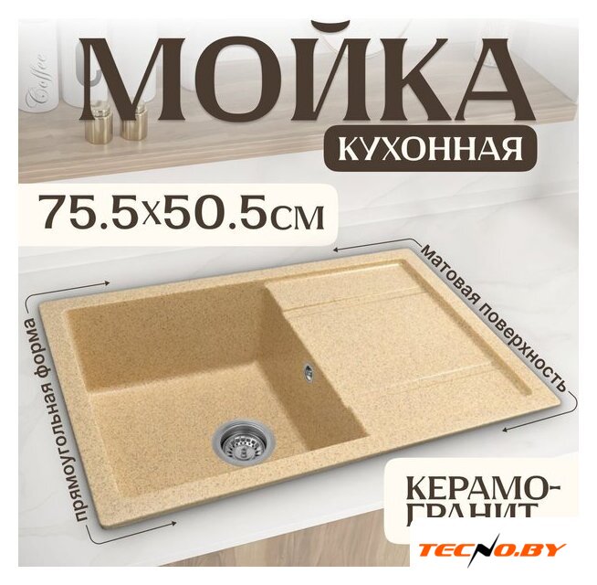 врезная на столешницу, искусственный камень, размеры: 50.5x75.5 см