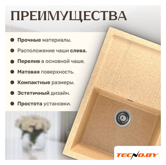 врезная на столешницу, искусственный камень, размеры: 42x50 см, глубина чаши: 20 см, в шкаф шириной от 50 см