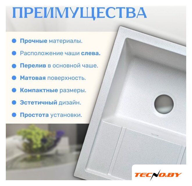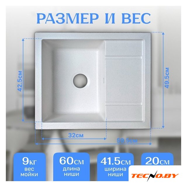 врезная на столешницу, искусственный камень, размеры: 42x60 см, глубина чаши: 17 см, в шкаф шириной от 50 см
