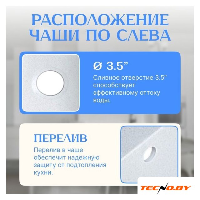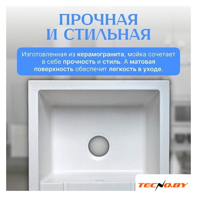 врезная на столешницу, искусственный камень, размеры: 44.5x50 см, глубина чаши: 19 см, в шкаф шириной от 50 см