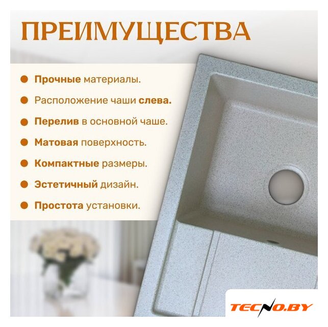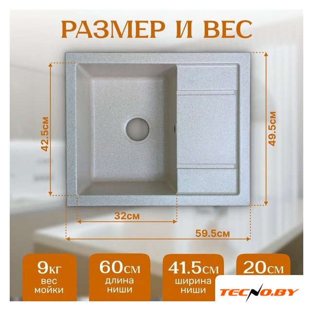 врезная на столешницу, искусственный камень, размеры: 42x60 см, глубина чаши: 17 см, в шкаф шириной от 50 см