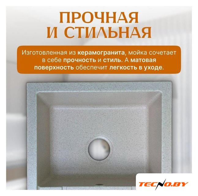 врезная на столешницу, искусственный камень, размеры: 44.5x50 см, глубина чаши: 19 см, в шкаф шириной от 50 см