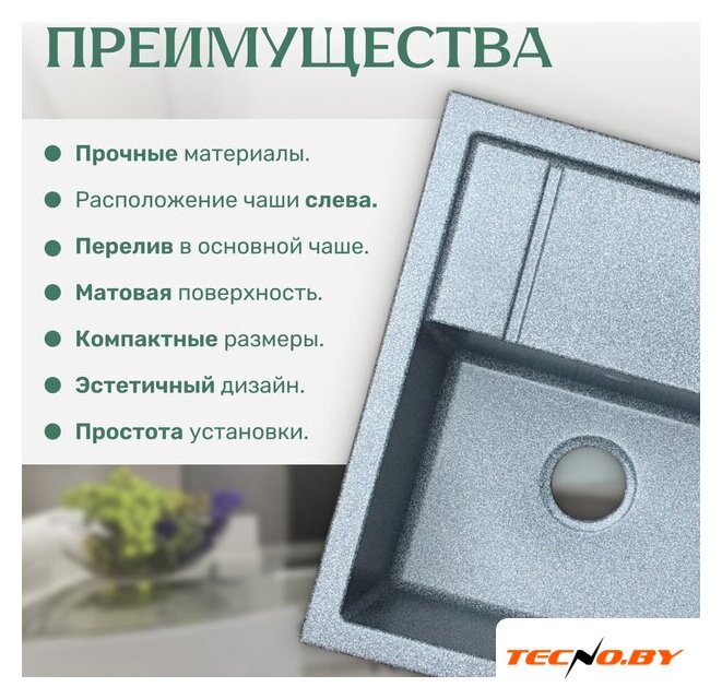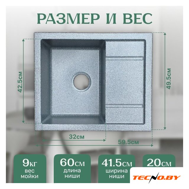 врезная на столешницу, искусственный камень, размеры: 42x60 см, глубина чаши: 17 см, в шкаф шириной от 50 см