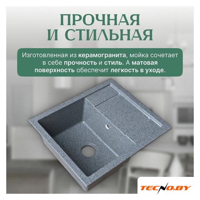 врезная на столешницу, искусственный камень, размеры: 44.5x50 см, глубина чаши: 19 см, в шкаф шириной от 50 см