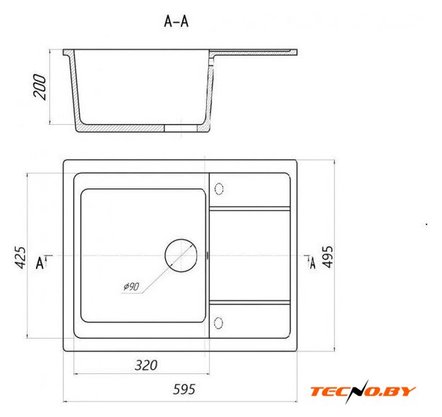врезная на столешницу, искусственный камень, размеры: 49.5x59.5 см