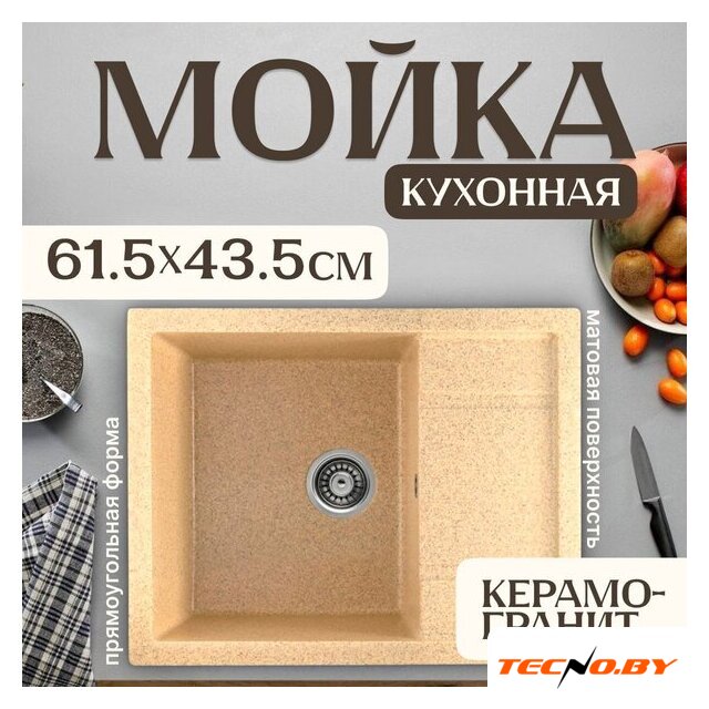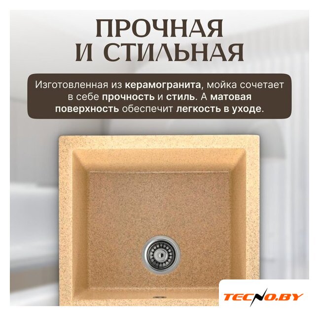 врезная на столешницу, искусственный камень, размеры: 44.5x50 см, глубина чаши: 19 см, в шкаф шириной от 50 см