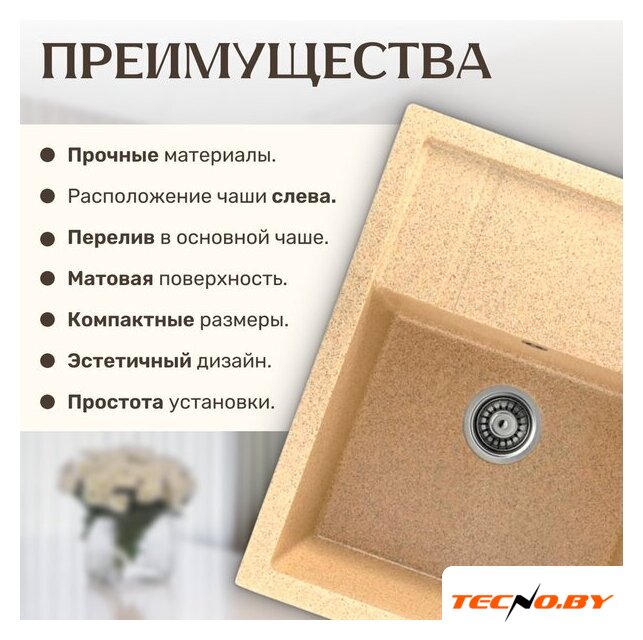 врезная на столешницу, искусственный камень, размеры: 42x60 см, глубина чаши: 17 см, в шкаф шириной от 50 см