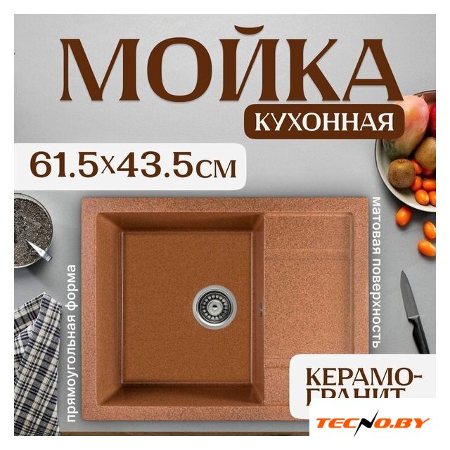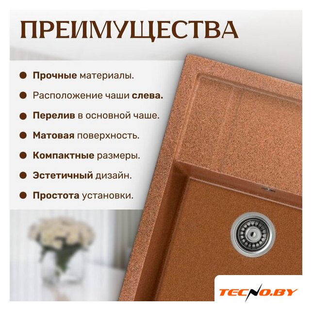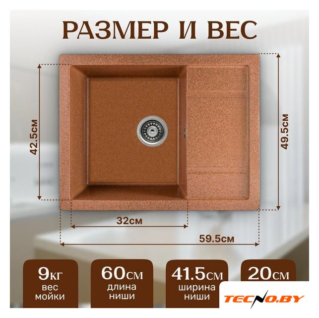 врезная на столешницу, искусственный камень, размеры: 42x60 см, глубина чаши: 17 см, в шкаф шириной от 50 см