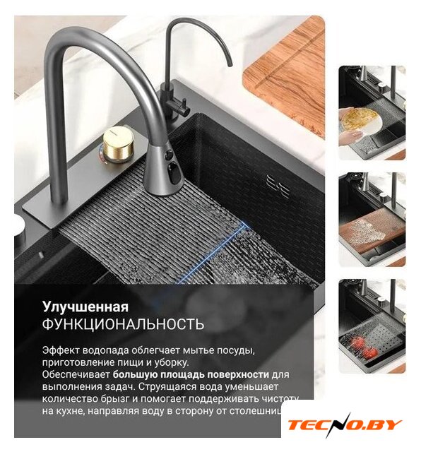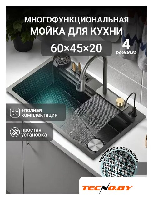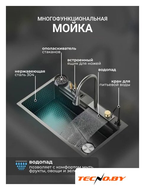 | Комплектация | смеситель, сифон, разделочная доска, коландер, кран для фильтрованной воды, инструкция, держатели (для ножей) |