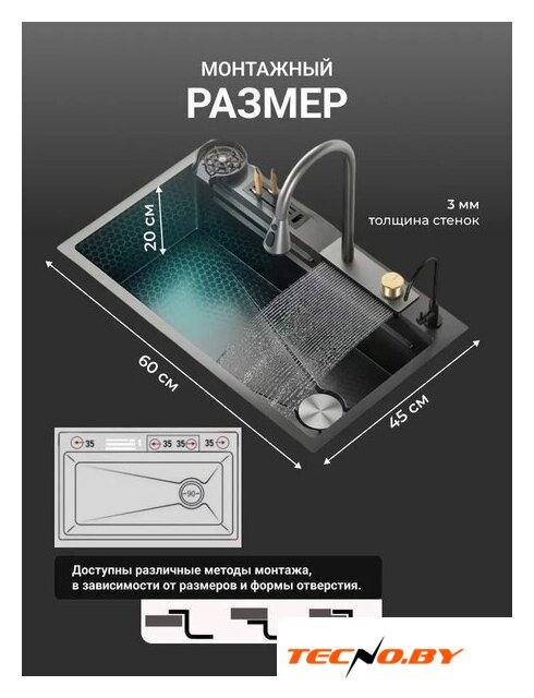 | Способ установки | врезная на столешницу, врезная под столешницу, врезная вровень со столешницей |