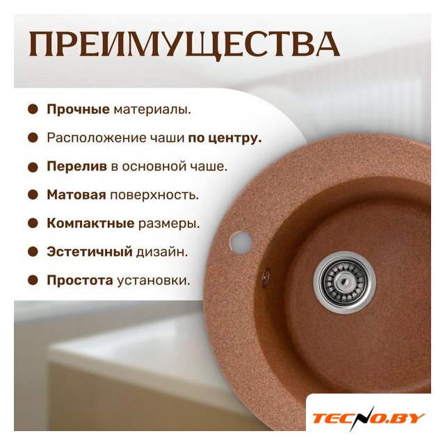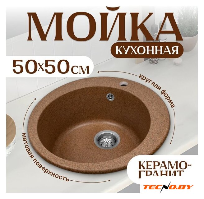 врезная на столешницу, искусственный камень, размеры: 50.5x50.5 см, глубина чаши: 19 см, в шкаф шириной от 45 см