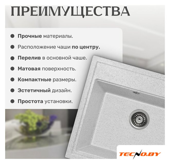 врезная на столешницу, искусственный камень, размеры: 42x60 см, глубина чаши: 17 см, в шкаф шириной от 50 см