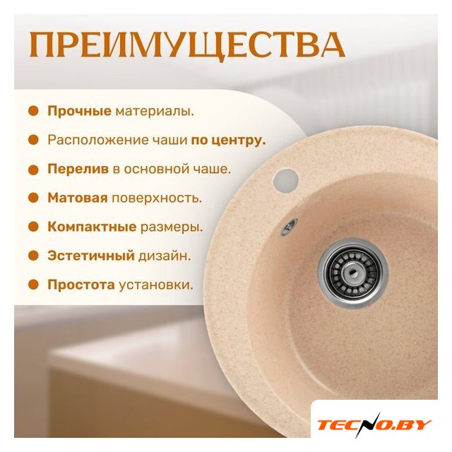 врезная на столешницу, искусственный камень, фактура: матовая, размеры: 47x47 см, глубина чаши: 19 см