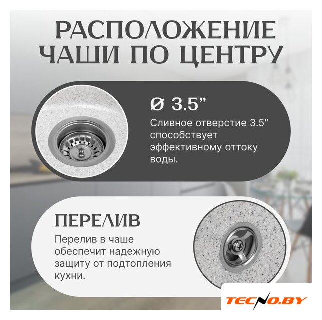 | Диаметр сливного отверстия | 3.5" |