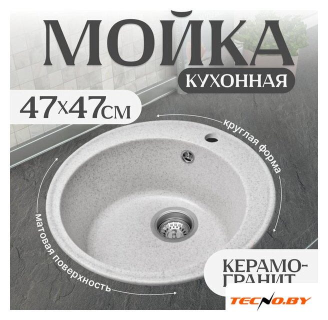 врезная на столешницу, искусственный камень, фактура: матовая, размеры: 47.5x47.5 см, глубина чаши: 18 см, в шкаф шириной от 50 см