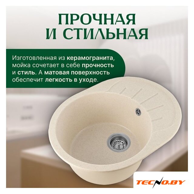 врезная на столешницу, искусственный камень, размеры: 47x61 см, глубина чаши: 17.5 см, в шкаф шириной от 50 см