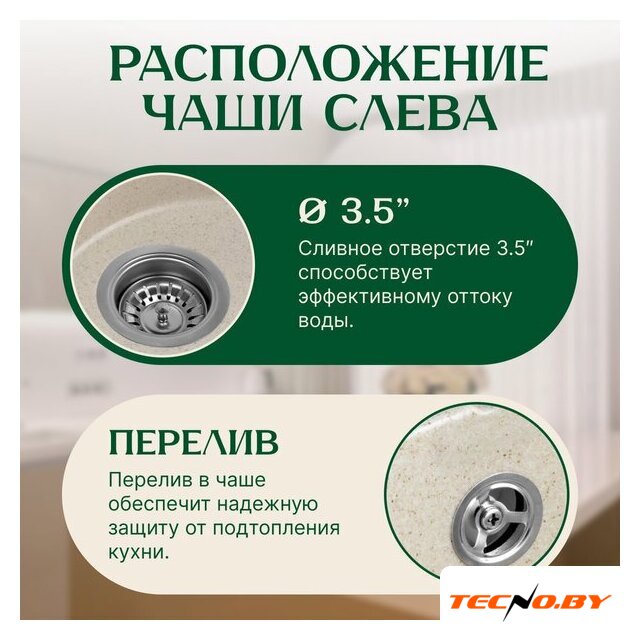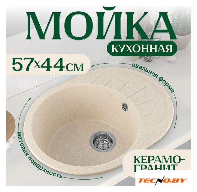 врезная на столешницу, искусственный камень, размеры: 44x57 см