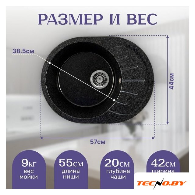 врезная на столешницу, искусственный камень, размеры: 44x57 см