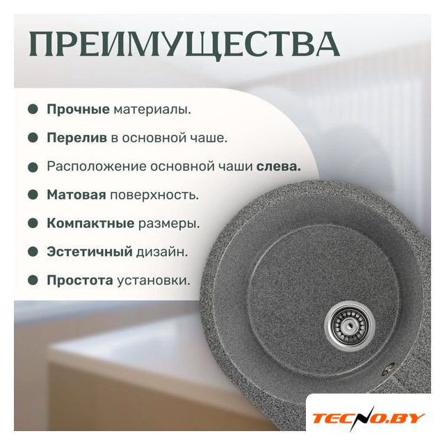 врезная на столешницу, искусственный камень, фактура: матовая, размеры: 42x49 см, глубина чаши: 17 см, в шкаф шириной от 50 см